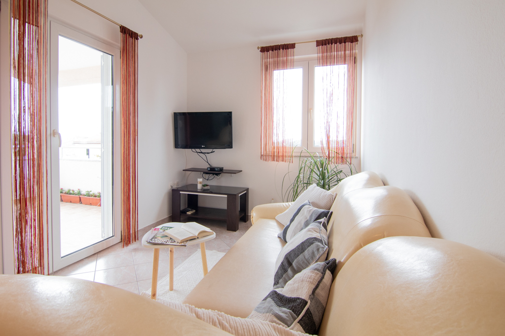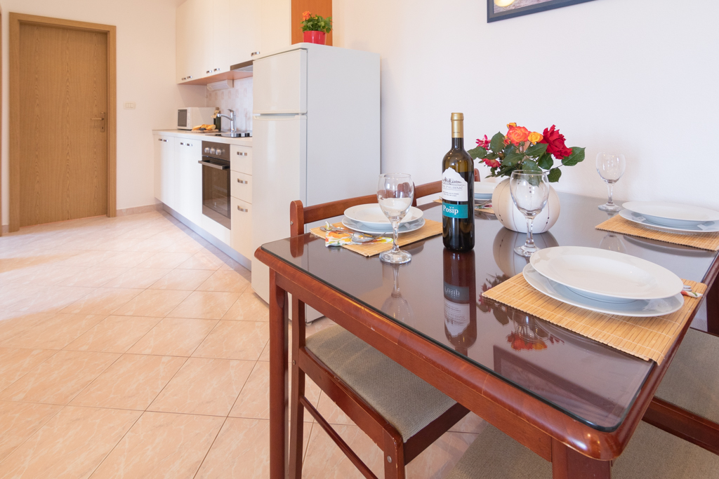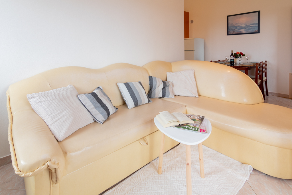 Maksimalno 5 osoba, 2 spavaće sobe s bračnim krevetom, kauč za 1 osobu u dnevnom boravku, kupaonica, terasa s stolom i stolice, klima, grijanje, LCD TV, sat, besplatni wi-fi internet, pogled na more, II kat, 65m2 Cjenik za 2021.